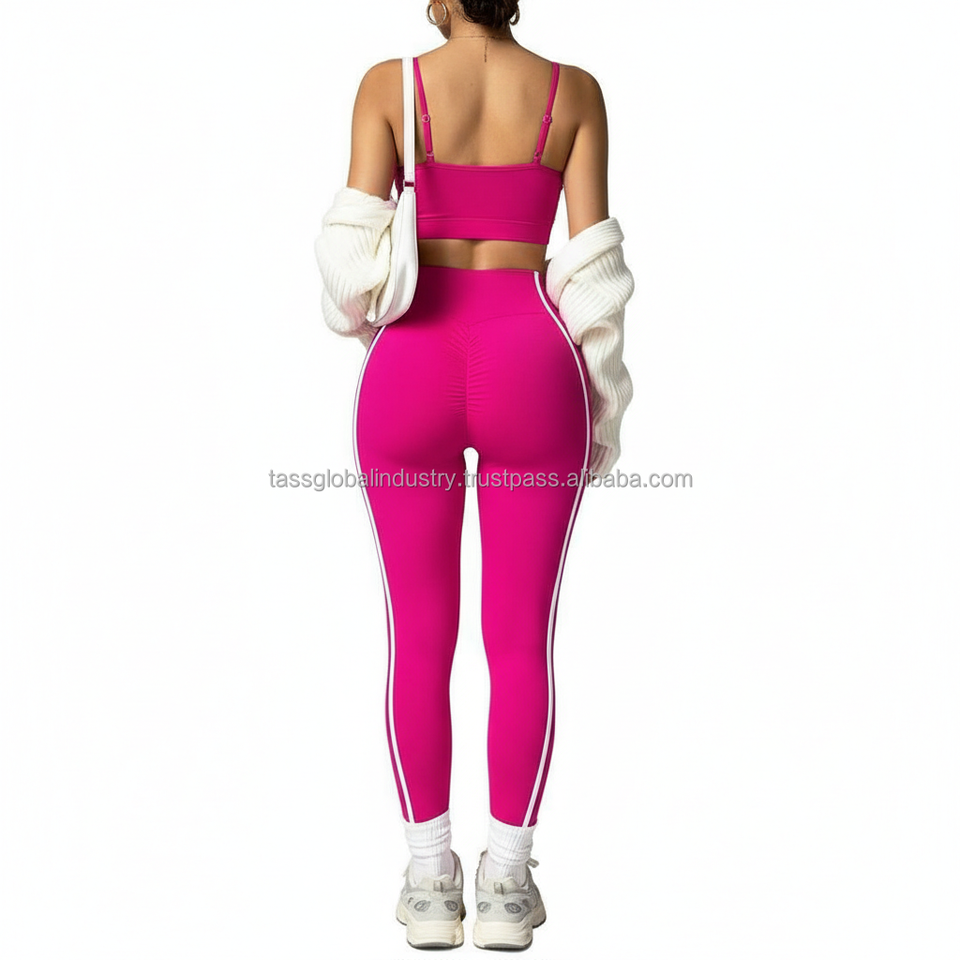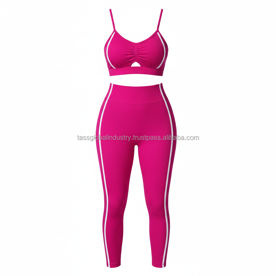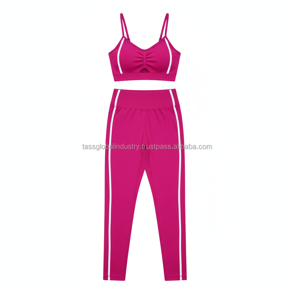 ชุดโยคะผู้หญิงแบบกำหนดเอง OEM 5 ชิ้น เสื้อชั้นในกีฬารัดรูป กางเกงเลกกิ้งเอวสูง แต่งขอบตัดกัน ไร้รอยต่อ แห้งเร็ว ระบายอากาศได้ดี