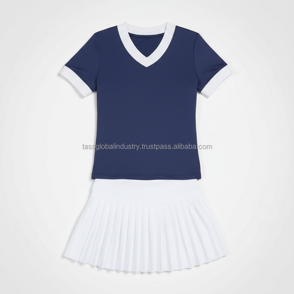 ชุดยูนิฟอร์มแบดมินตันผู้หญิงแบบสั่งทำ OEM เสื้อแขนสั้นแบบแห้งเร็วและกระโปรงจีบสำหรับฝึกซ้อมและแข่งขัน ผลิตโดยผู้ผลิตชุดทีม