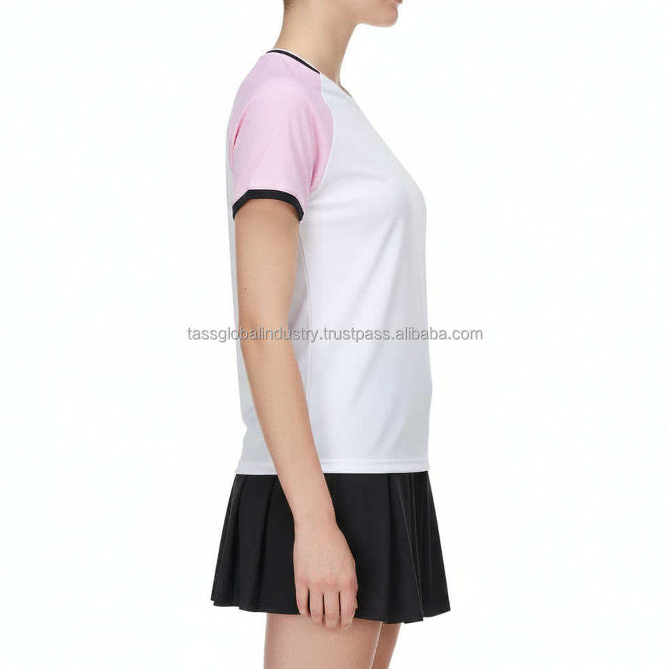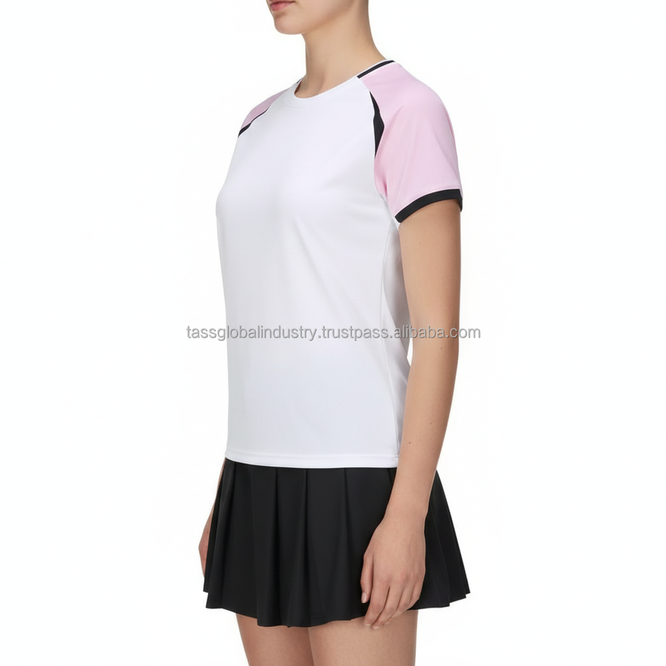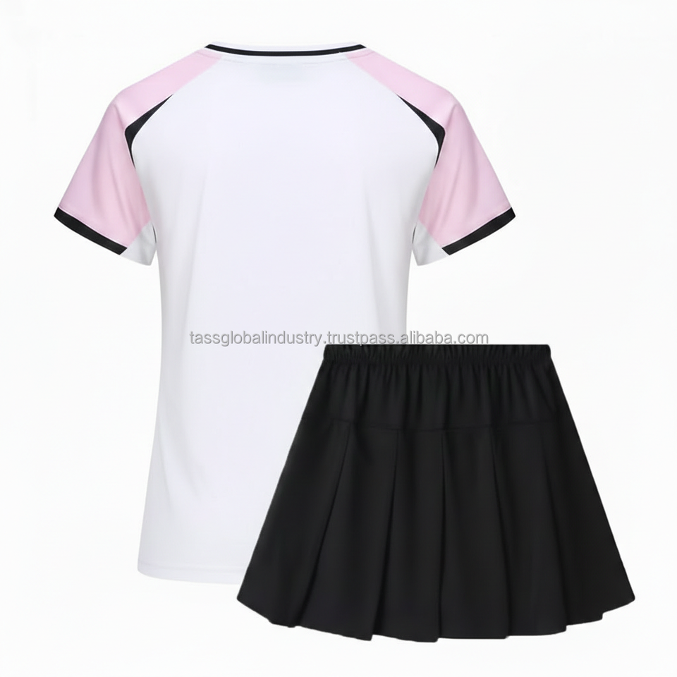 ชุดยูนิฟอร์มแบดมินตันผู้หญิงแบบสั่งทำ OEM เสื้อแขนสั้นคอปกตัดต่อแขนแร็กแลน และกระโปรงจีบ