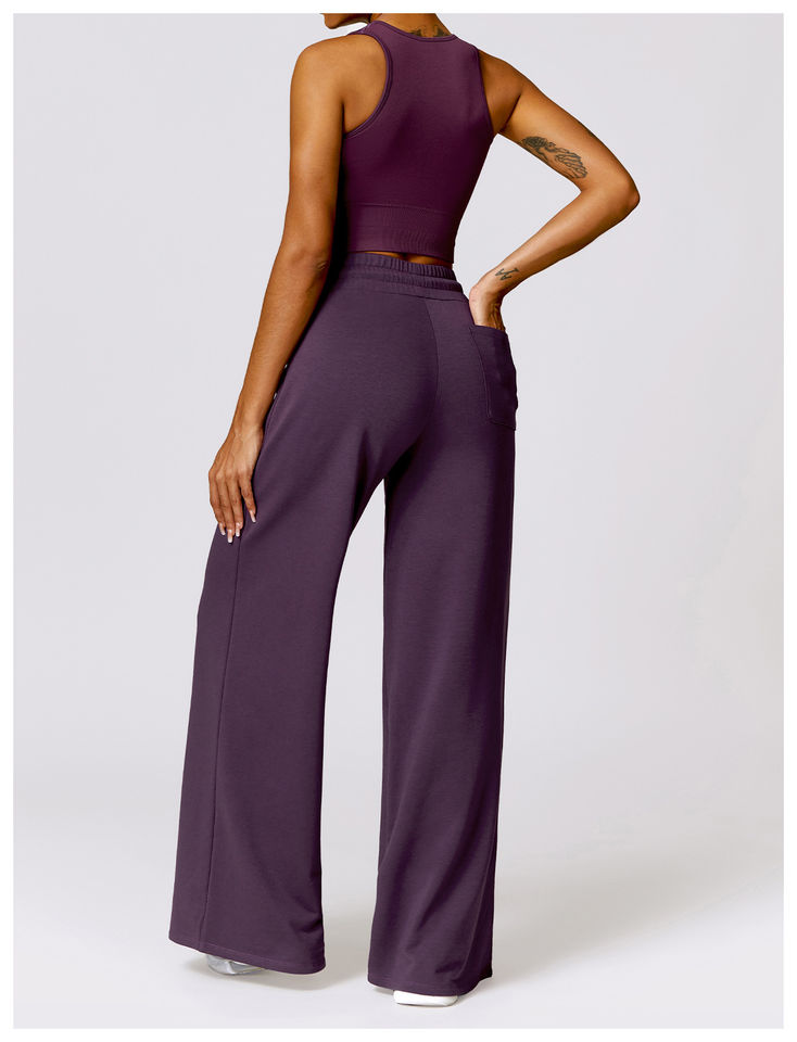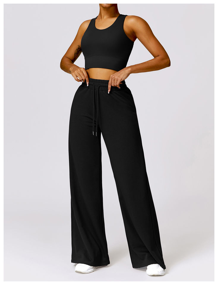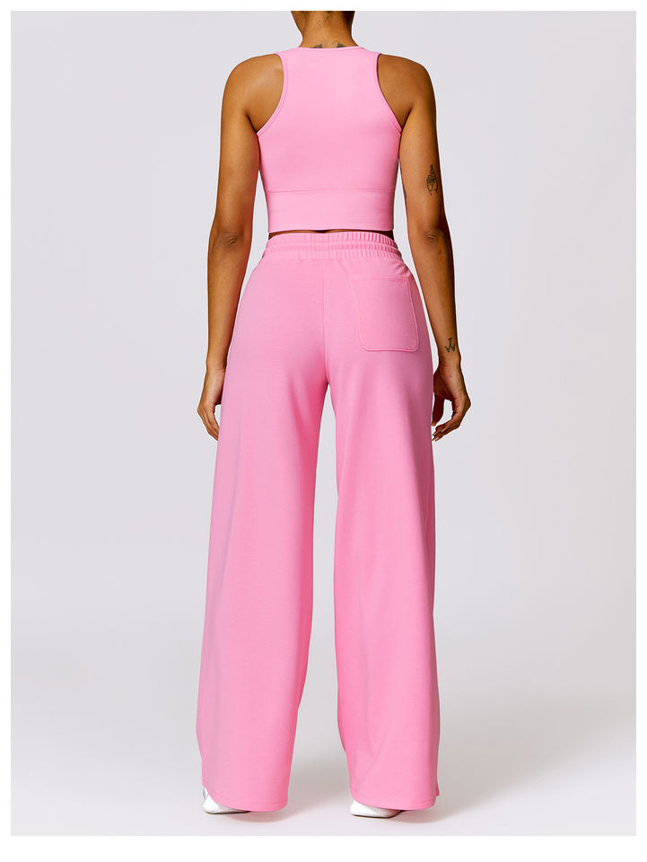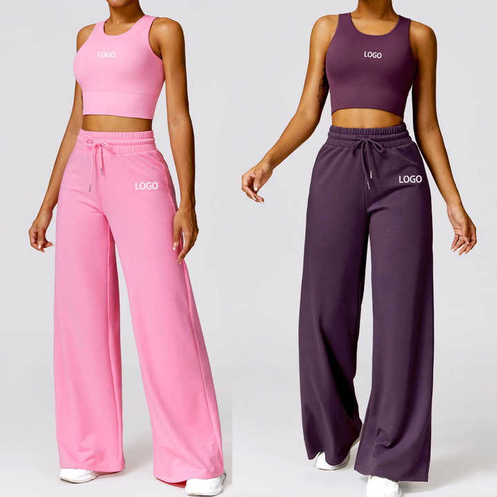 OEM Custom Women's 2-Piece Workout Set Sports Tank Top & Wide Leg Flare Pants Yoga Gym Fitness Activewear