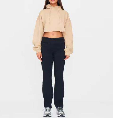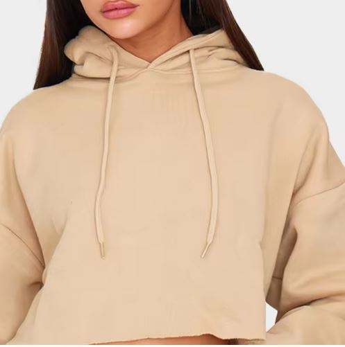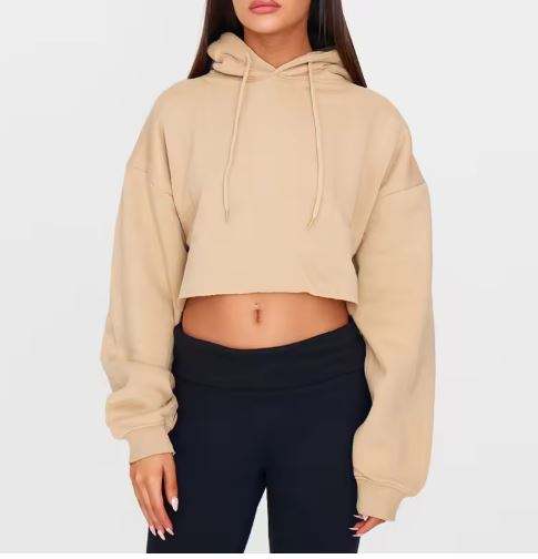 เสื้อสเวตเตอร์มีฮู้ดของผู้หญิงเสื้อครอปแบบสวมหัวสีเรียบ
