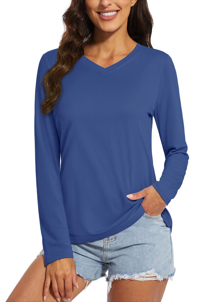 เสื้อป้องกันผื่นคอวีของผู้หญิงกำหนดเองได้ UPF 50 + ป้องกันแสงแดดสำหรับเดินป่าและตั้งแคมป์ฤดูร้อน
