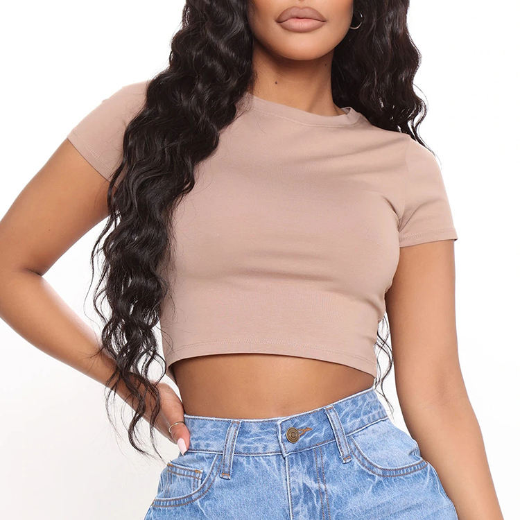 OEM Custom Women's Casual Crop Top T-Shirt 100% Cotton Lightweight Breathable Fitness Tees for Summer Sexy Style