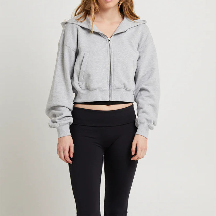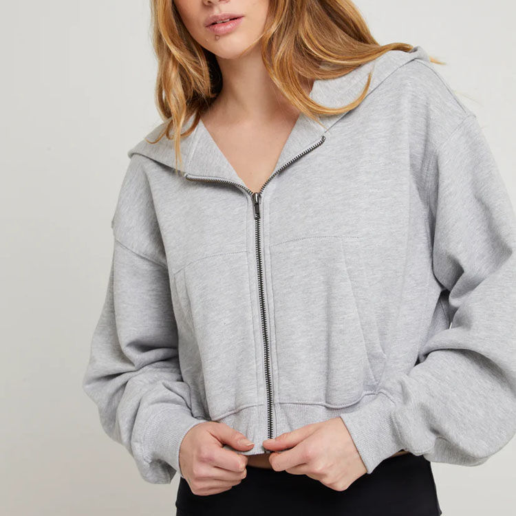 เสื้อฮู้ดครอปพิมพ์ลายพัฟฟ์แบบซิปเต็มตัว ผ้าฝ้ายผสมโพลีเอสเตอร์ ทรงหลวม สวมใส่สบาย เหมาะสำหรับออกกำลังกาย ผลิตตามแบบ OEM