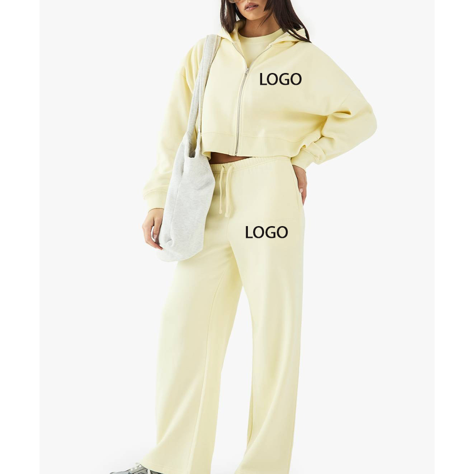 ชุดวอร์มซิปแบบสั่งทำ OEM เสื้อฮู้ดลำลองทรงหลวมสำหรับผู้หญิง ชุดออกกำลังกายวิ่งกลางแจ้ง ผ้าฝ้ายฟลีซ ชุดจ็อกกิ้ง