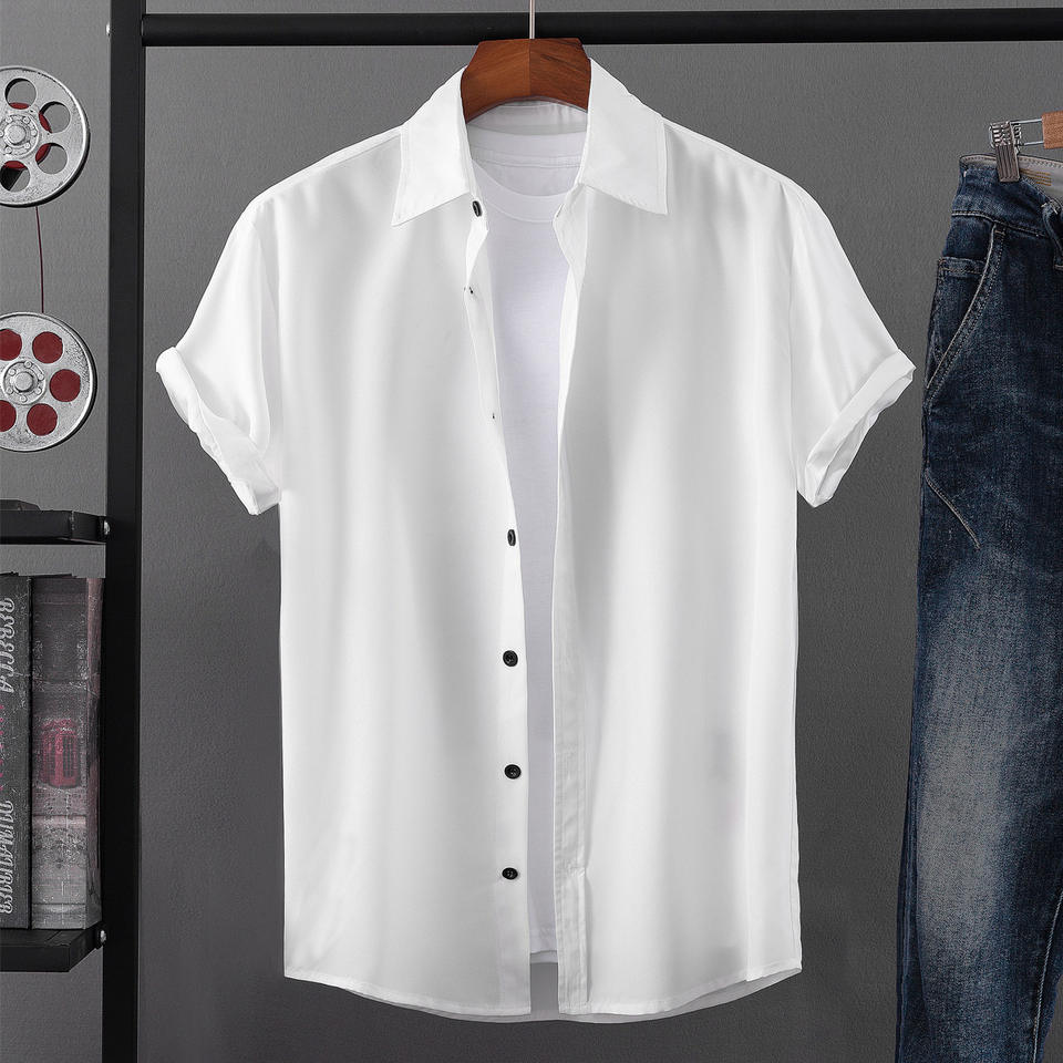 OEM Custom logo Embroidery Printed Design Cross-border Foreign Trade New Men's Fashion Solid Color Short-sleeved Shirt