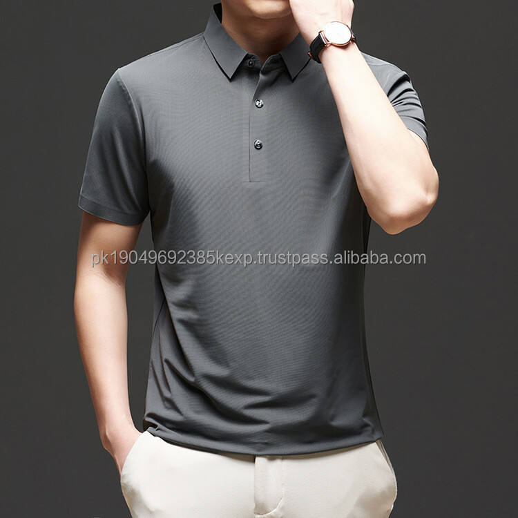 เสื้อโปโลผ้าไนลอนไร้ตะเข็บสำหรับผู้ชายเสื้อโปโลผ้าไอซ์ซิลค์ปักลายโลโก้ออกแบบได้ตามต้องการ