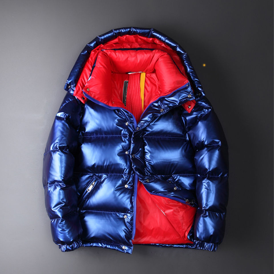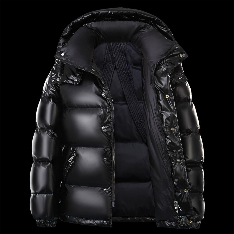 เสื้อแจ็คเก็ตพัฟเฟอร์บุขนเป็ดคุณภาพสูงแบบมีฮู้ดสำหรับผู้ชาย รับผลิตตามแบบ OEM พร้อมปักโลโก้ เสื้อแจ็คเก็ตหนาแฟชั่นสำหรับฤดูหนาว เสื้อแจ็คเก็ตพัฟเฟอร์ผู้ชายแบบมันเงา