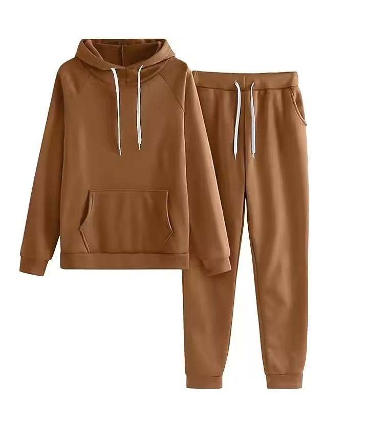 ชุดกีฬาสองชิ้นสำหรับวิ่งจ๊อกกิ้งเสื้อแจ็กเก็ตมีฮู้ดพร้อมผ้าสำหรับฤดูหนาวชุดวอร์มจ๊อกกิ้ง