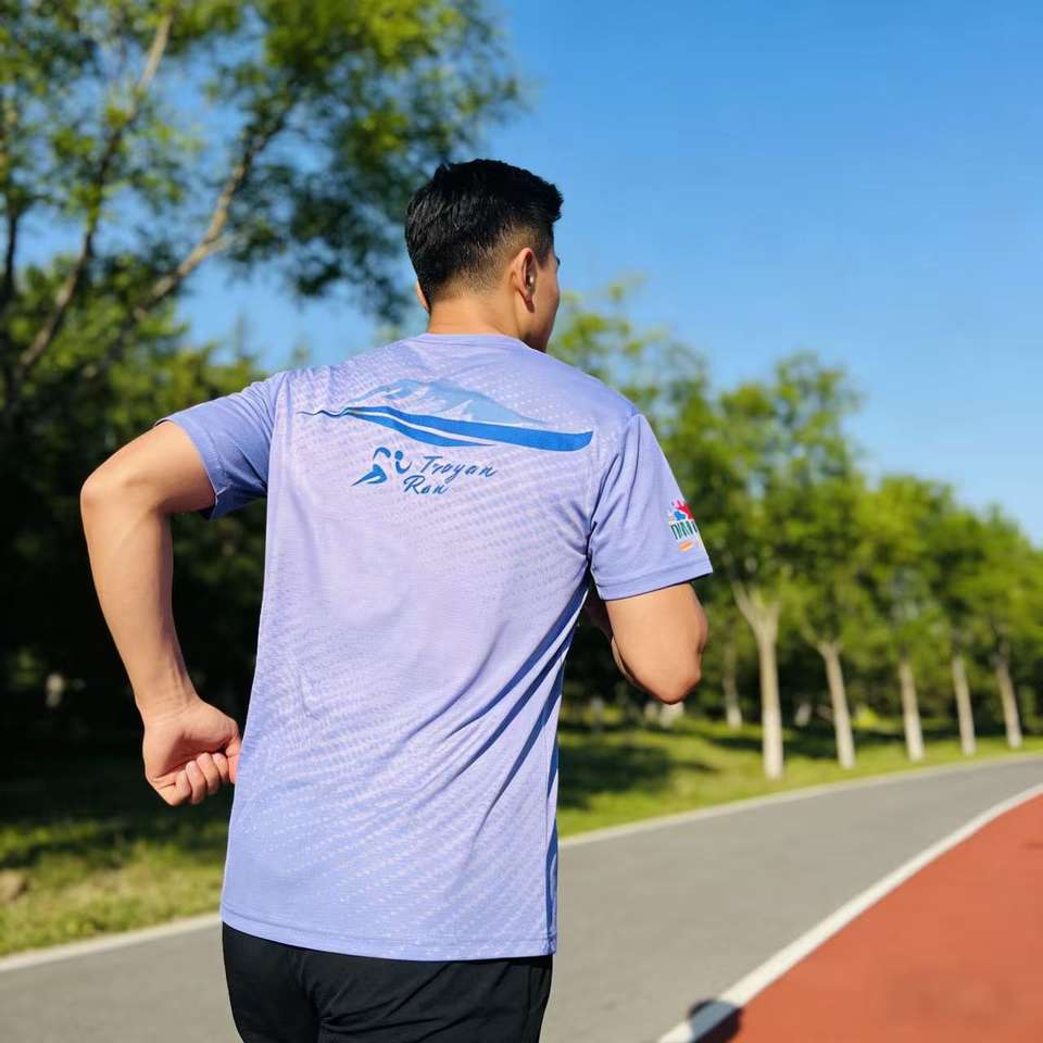 เสื้อวิ่งถักแบบสั่งทำโลโก้ OEM ขายส่ง แห้งเร็ว พิมพ์ลายด้วยเทคนิค Discharge ระบายอากาศได้ดี เหมาะสำหรับงานมาราธอน ทีมงาน ชมรม และงานส่งเสริมการขาย