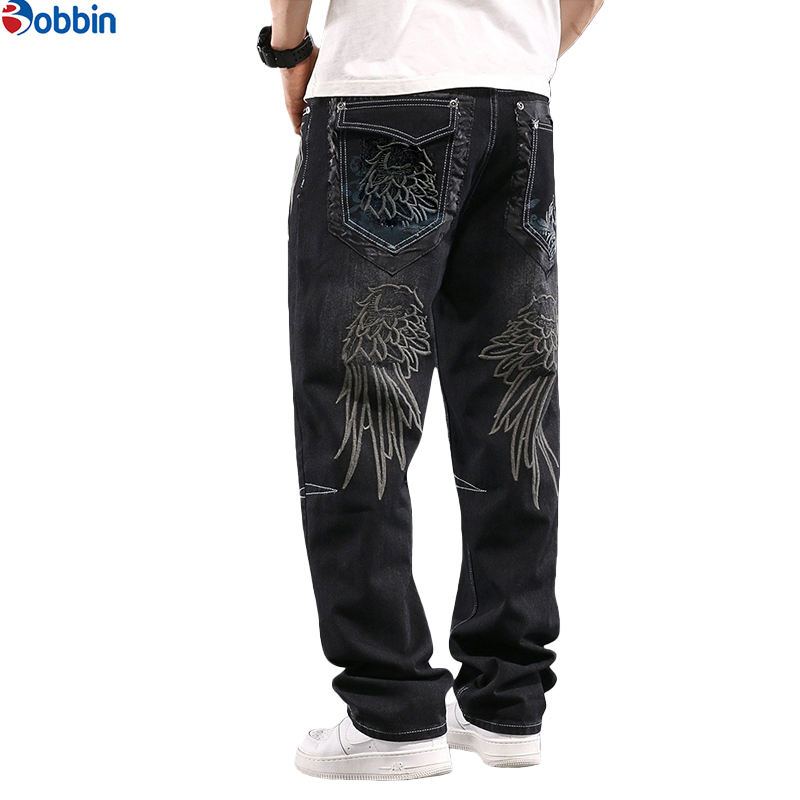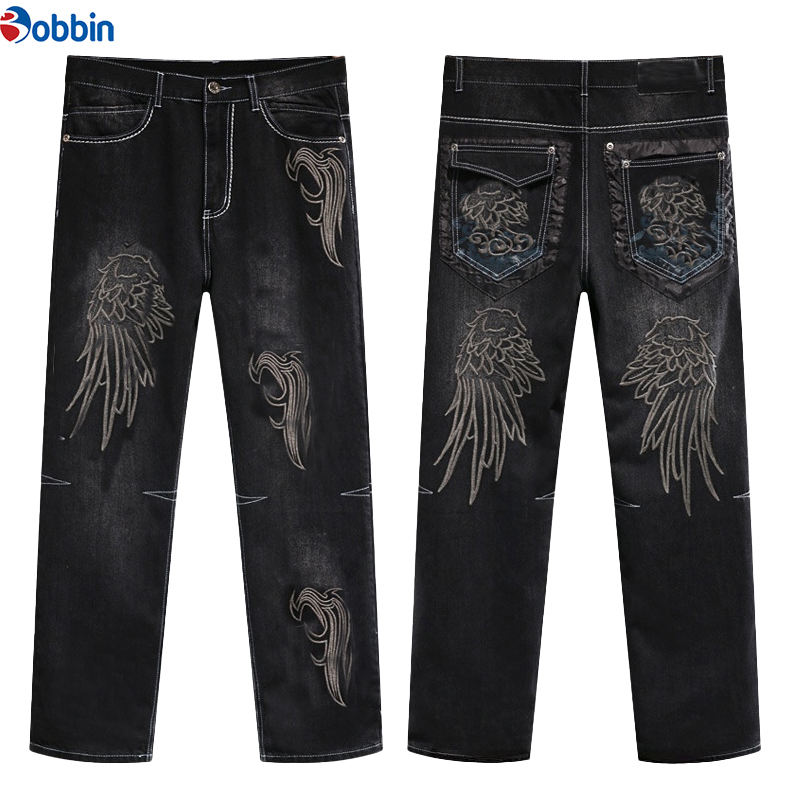กางเกงยีนส์ผู้ชายแบบ OEM สั่งทำโลโก้ได้ คุณภาพสูง สไตล์ฮิปฮอป ผ้าถัก เป็นมิตรกับสิ่งแวดล้อม เอวกลาง ปักลาย สำหรับผู้ชาย