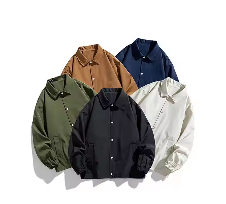 เสื้อโค้ทผู้ชายเสื้อแจ็คเก็ตแบบคลาสสิกเสื้อกันลมใส่สบายเสื้อโค้ทไม่มีปกปกคอปกเสื้อแจ็คเก็ตเสื้อกันลม