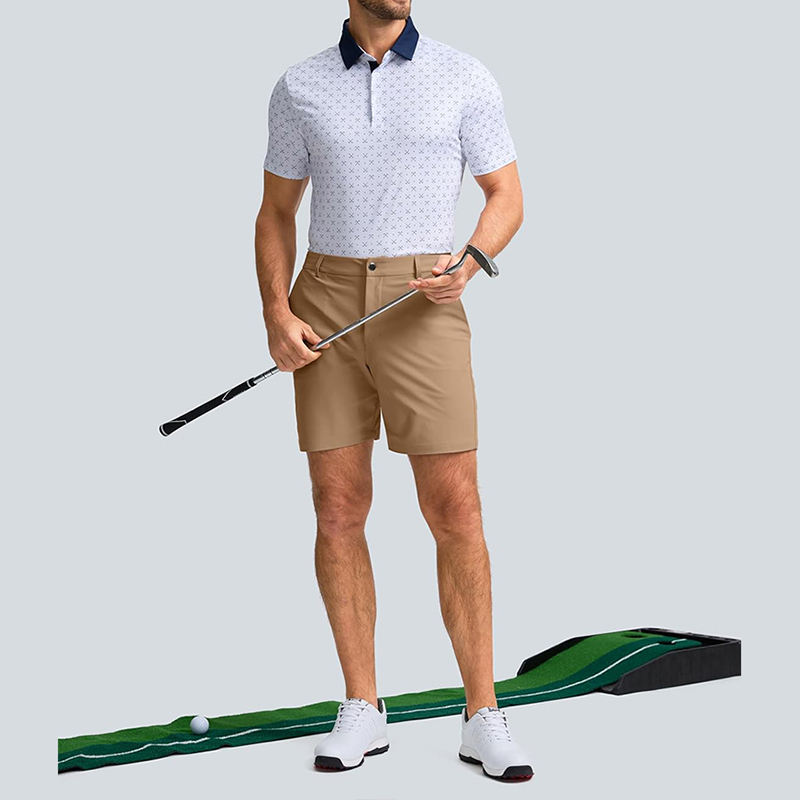 กางเกงขาสั้นเล่นกอล์ฟสำหรับผู้ชายกางเกงขาสั้นผ้ายืดไมโครยืดหยุ่นสำหรับใส่ลำลองเล่นกีฬาฤดูร้อนโลโก้ออกแบบได้ตามต้องการ