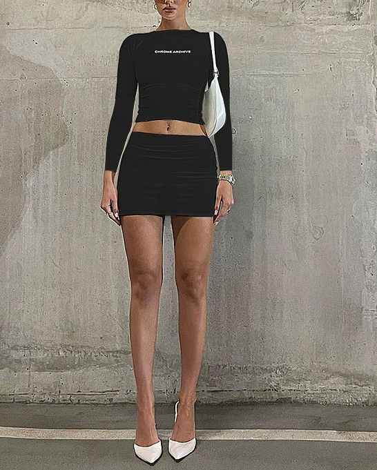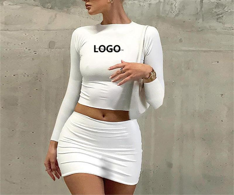 ชุดรัดรูปแขนยาวสำหรับผู้หญิง2ชิ้นชุดกระโปรงสั้นเซ็กซี่สั่งทำโลโก้ฤดูใบไม้ผลิโรงงานแฟชั่น