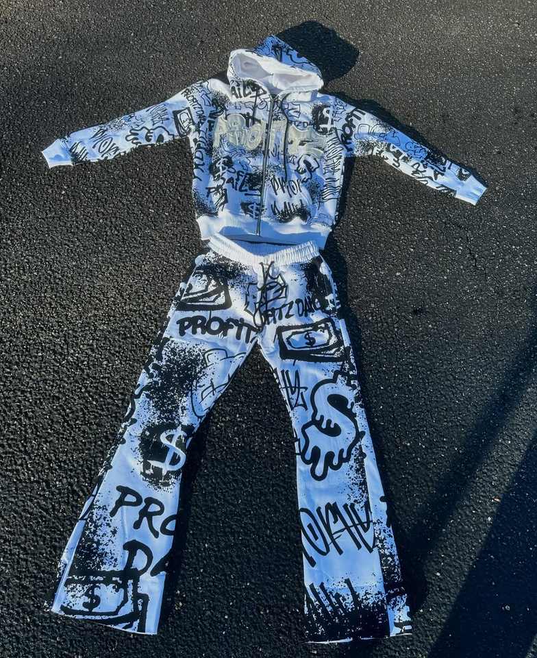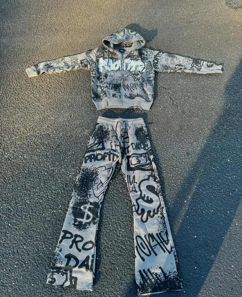 ชุดวอร์มลายกราฟิกโอเวอร์ไซส์สำหรับผู้ชายชุด100% 65% ผ้าฝ้าย35% โพลีเอสเตอร์ (ขนแกะ) 280กับ300กรัมตามสั่ง