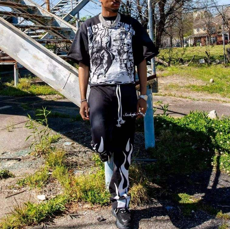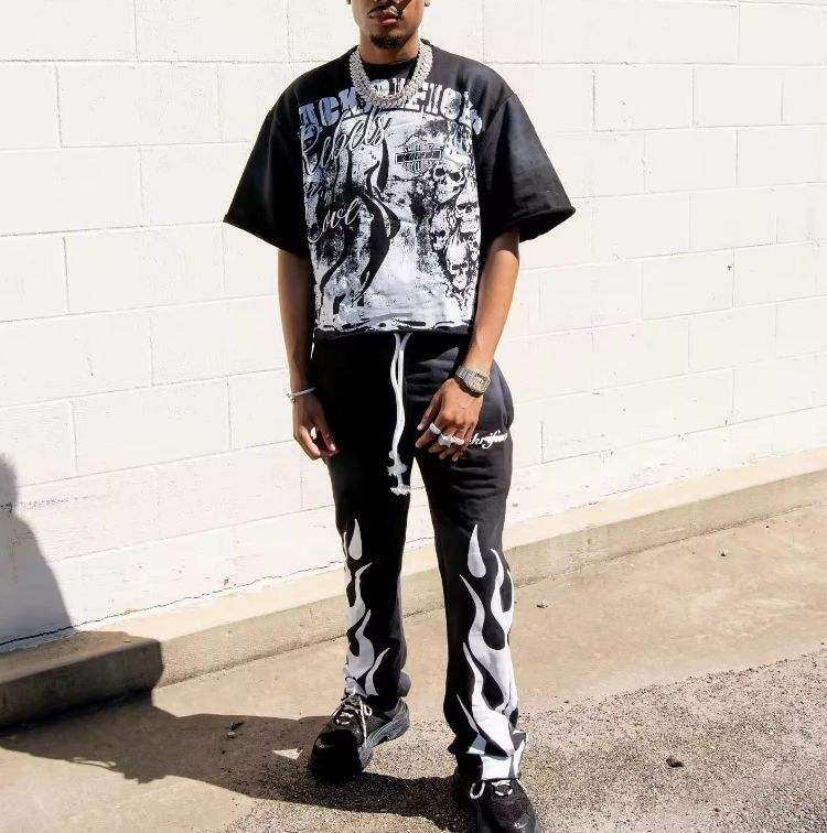 ชุดวอร์มขาบานของผู้ชายชุดวอร์มลายพิมพ์พัฟซ้อนกันดีไซน์ล่าสุดงานปักลาย
