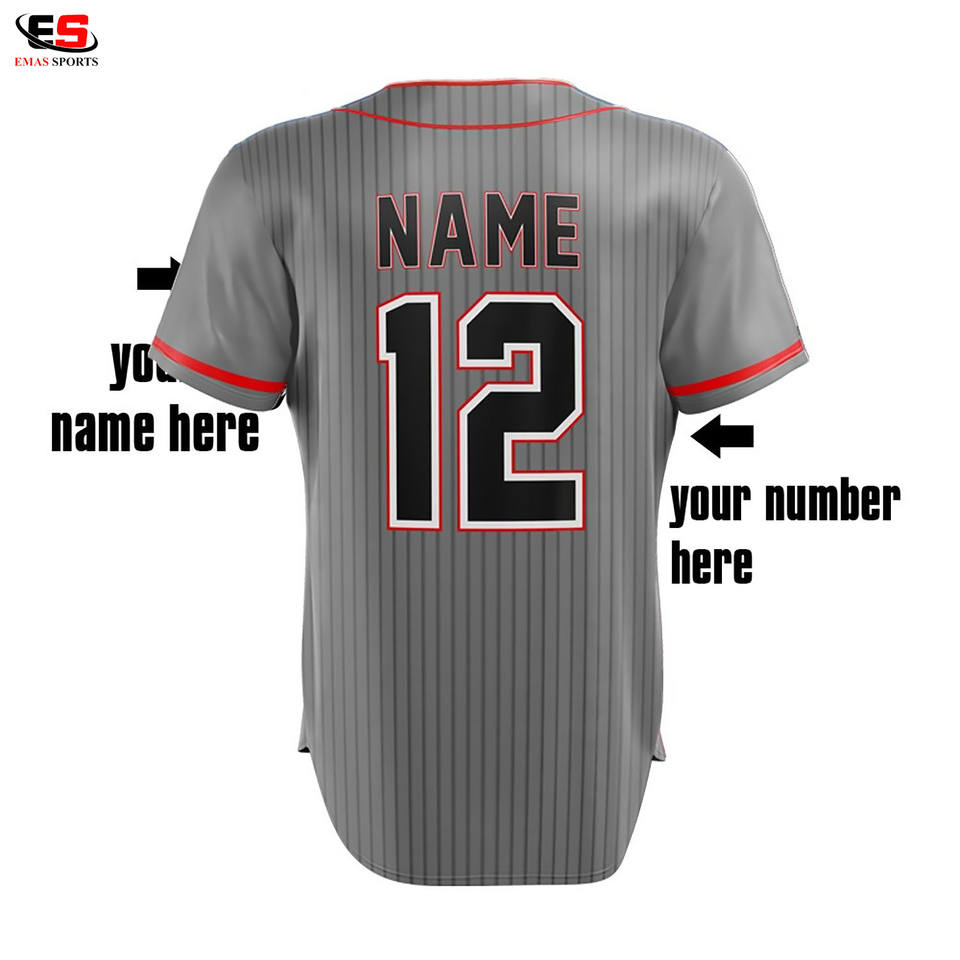 เสื้อกีฬากางเกงขาสั้นผ้าโพลีเอสเตอร์พิมพ์ชื่อเสื้อเบสบอลปรับแต่งได้สำหรับ100%
