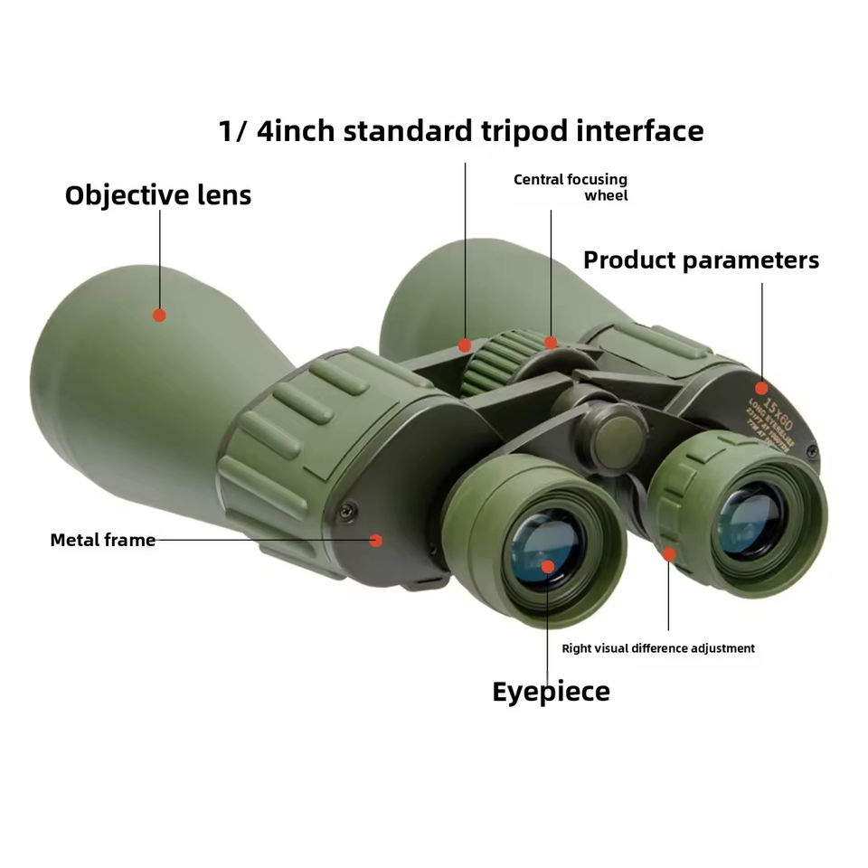 กล้องสองตา HD ปรับแต่งได้15X60กำลังขยายสูงปรับแต่งได้กล้องส่องทางไกลข้ามพรมแดนแบบมีแสงน้อยมองเห็นในเวลากลางคืนสีเขียวกลางแจ้งปริซึม Bak4