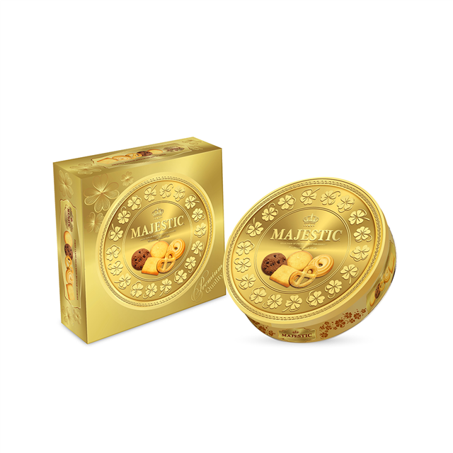 กล่องของขวัญเปล่าเกรดอาหารกระป๋องโลหะสำหรับเคี้ยวหมากฝรั่งคุณสมบัติรีไซเคิลได้สำหรับขนมช็อกโกแลตเค้กสามารถปรับแต่งได้