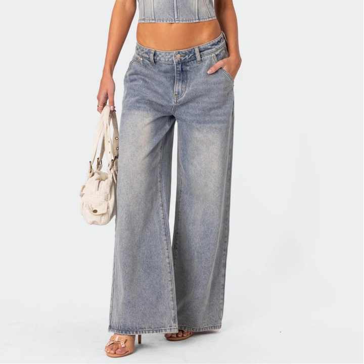 กางเกงขากว้างกางเกงยีนส์ สไตล์