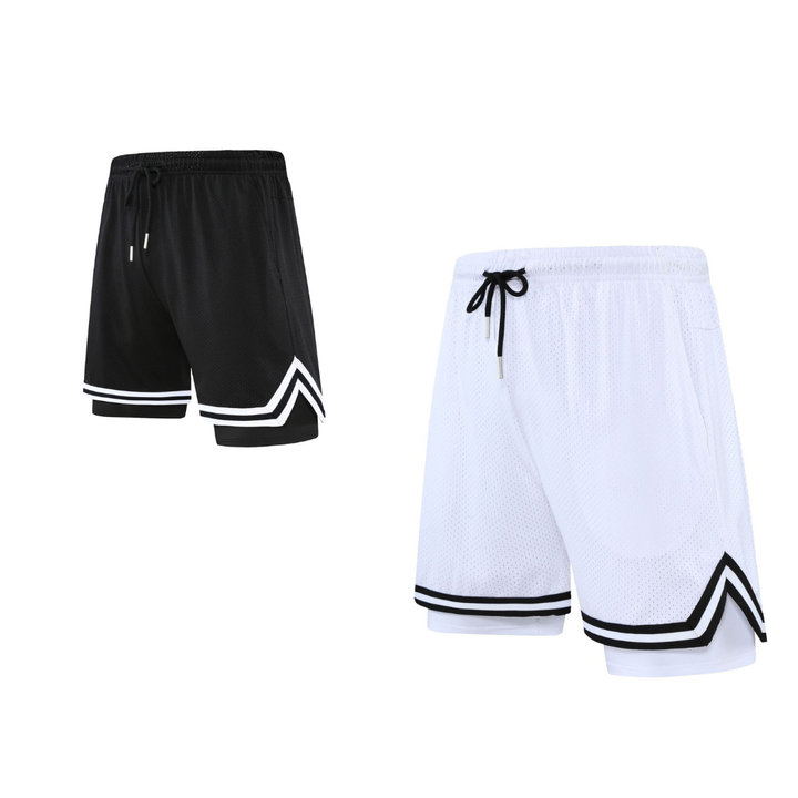 กางเกงขาสั้นเล่นกีฬาแบบแห้งเร็วสำหรับผู้ชายสไตล์อเมริกันบุสองชิ้นยาวถึงเข่า