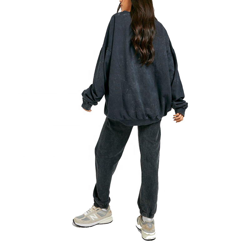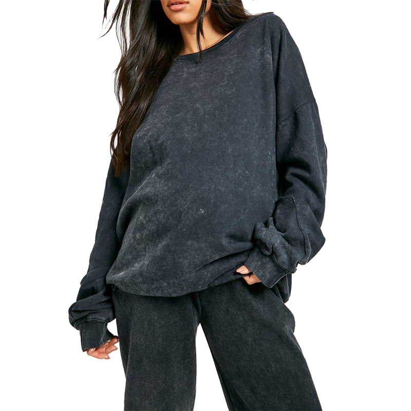 รับผลิตเสื้อผ้าผู้หญิงแบบ OEM ชุดวอร์มสีเทาฟอกกรดทรงโอเวอร์ไซส์สำหรับเด็กผู้หญิง ชุดแทรคสูทแบบยูนิเซ็กซ์ สั่งทำพิเศษ ปี 2026