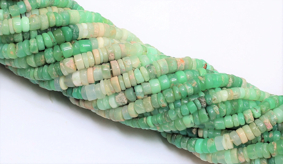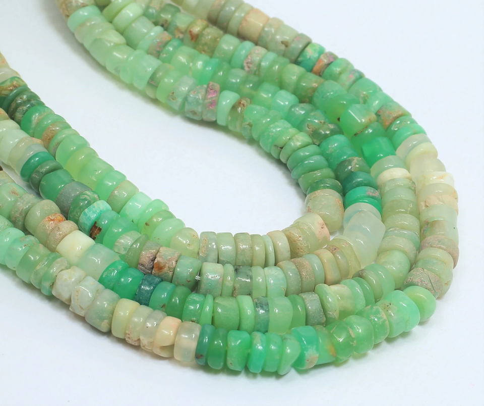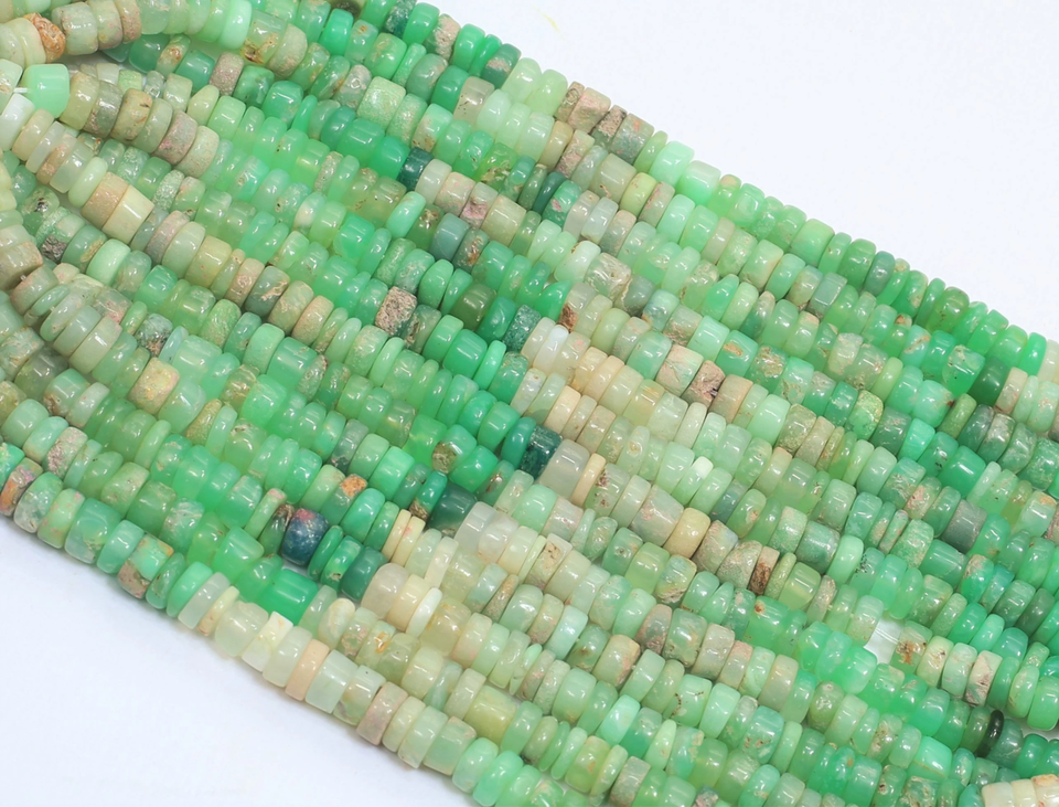 OEM Customized AAA Quality Natural Chrysoprase Shaded Plain Smooth Tyre Shape Heishi Beads 4mm-6mm Wheel Shape Gemstone Beads
