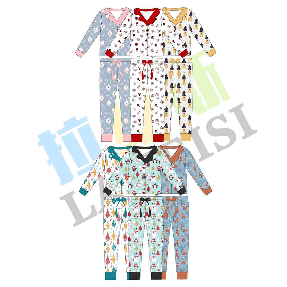 ชุดหมีเด็กผ้าใยไผ่พิมพ์ลายคริสต์มาสจั๊มสูทมีซิปแขนยาวออกแบบได้ตามต้องการ OEM