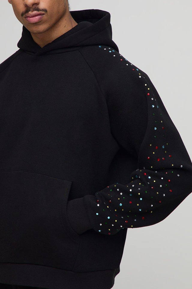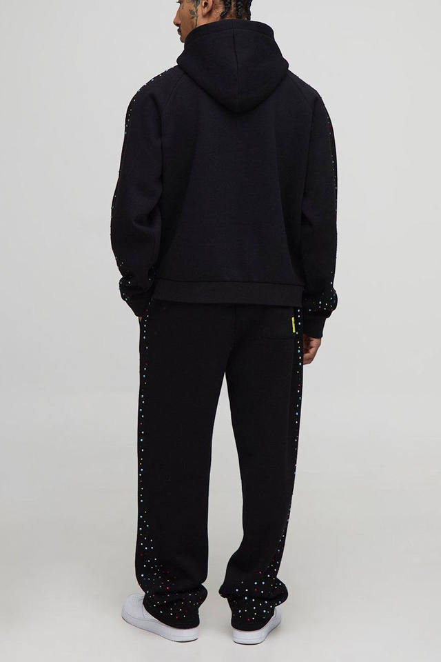 ชุดสเวตสูทผ้าฝ้ายผสมไรน์สโตนมีฮู้ดและกางเกงจ็อกเกอร์ผ้าคอตตอนระบายอากาศ