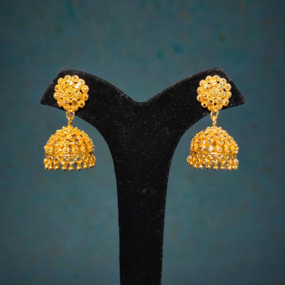 ชุดต่างหูพร้อม22CT ชุบทอง Jhumka เครื่องประดับสำหรับผู้หญิงชุดต่างหูออกแบบมาใหม่
