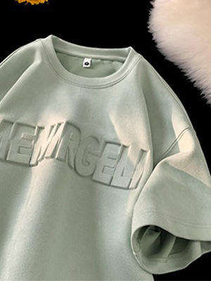 เสื้อยืดคอกลมลายนูนสำหรับผู้ชายเสื้อยืดถักทรงโอเวอร์ไซส์ผ้าคอตตอนออร์แกนิก100% โลโก้แบบกำหนดเองเสื้อยืดลายนูนสำหรับ3D