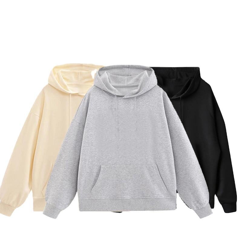เสื้อสเวตเตอร์สวมหัวมีฮู้ดของผู้ชายเสื้อสเวตเตอร์แบบสวมหัวเปิดไหล่สีพื้นทรงหลวมแนวอเมริกันถักกันยับออกแบบโลโก้ได้ตามต้องการ