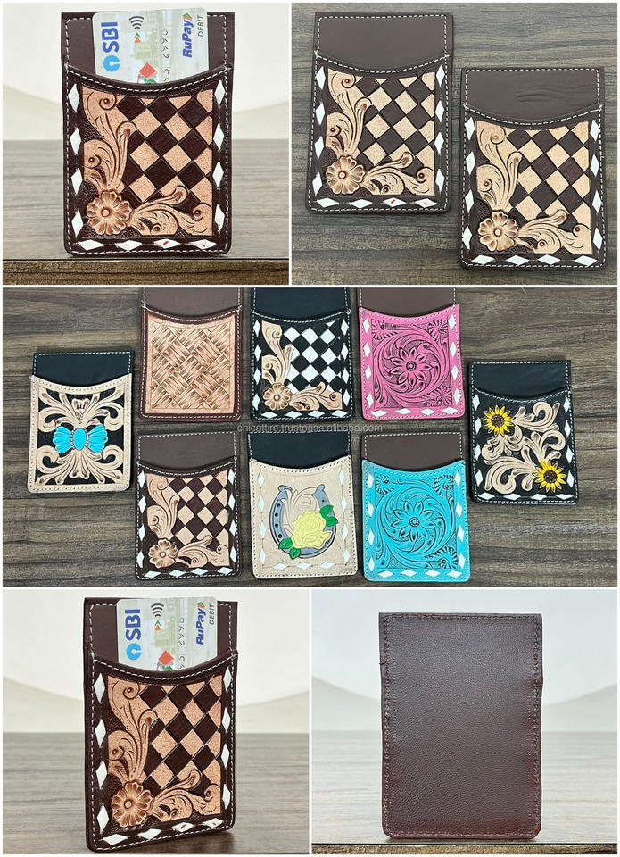 OEM Customized Handcrafted Cowhide Leather Card Holder Western Tooled Slim Credit Card Case Durable Pocket ID Holder for Unisex