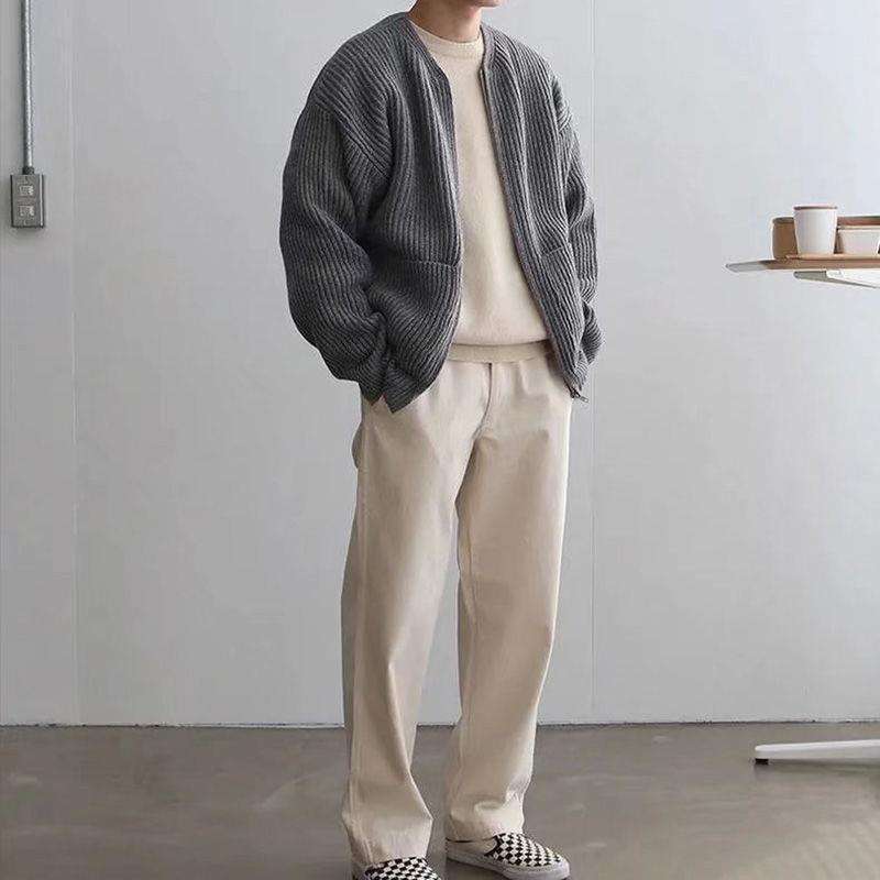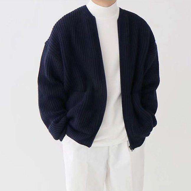 เสื้อสเวตเตอร์สำหรับผู้ชาย, เสื้อสเวตเตอร์ทรงหลวมใส่สบายสีพื้นยาวเรียบง่ายออกแบบโลโก้ได้ตามต้องการ
