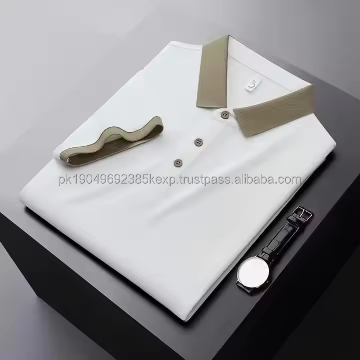 เสื้อโปโลผู้ชายระดับไฮเอนด์สำหรับผู้ชายเสื้อผ้าทำงานของบริษัทยาวทันสมัยออกแบบโลโก้ได้ตามต้องการมีขนาดใหญ่