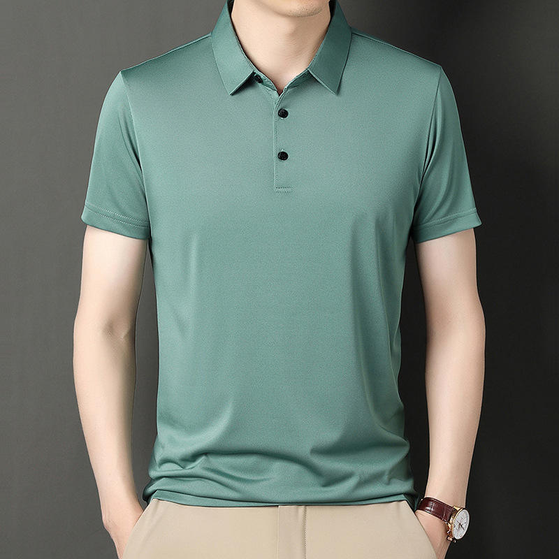 เสื้อโปโลแขนสั้นสำหรับผู้ชายเสื้อโปโลผ้าไอซ์ซิลค์ทรงหลวมลำลองดีไซน์โลโก้ออกแบบได้ตามต้องการ