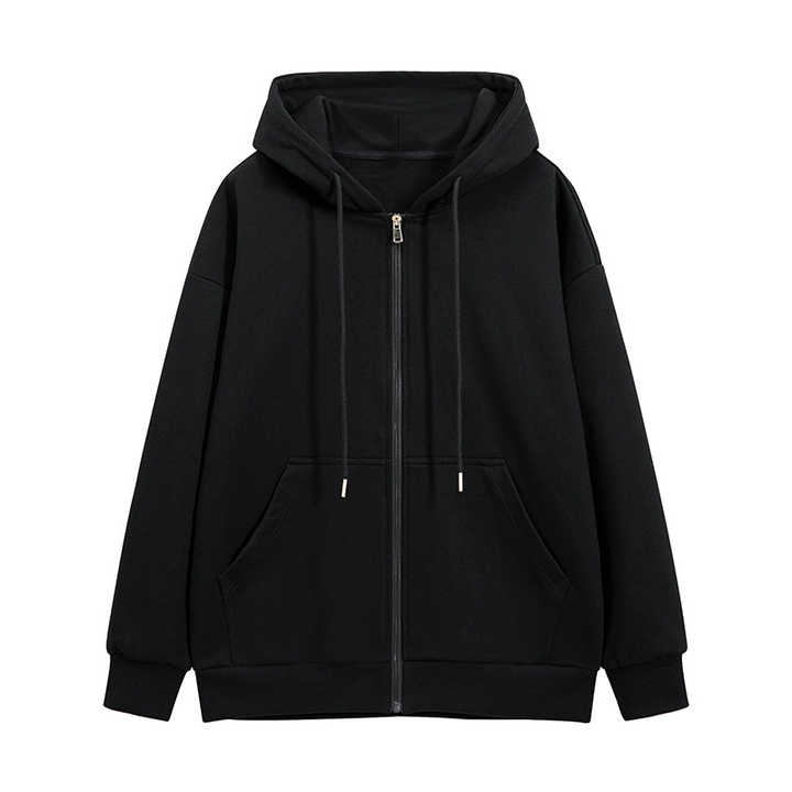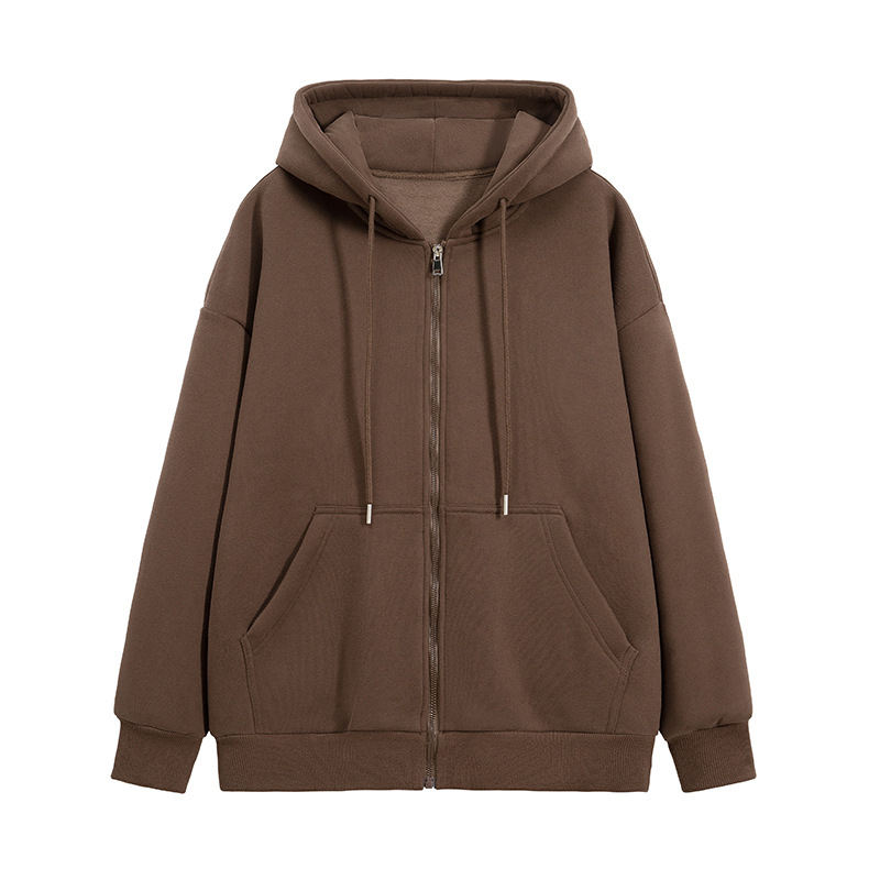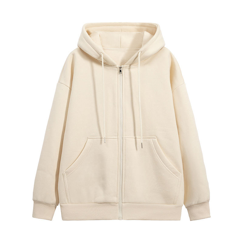 เสื้อฮู้ดกีฬาแบบลำลองใส่ได้ทั้งชายและหญิงเสื้อฮู้ดกีฬาปล่อยไหล่ทรงหลวมมีซิปขนาดใหญ่ออกแบบโลโก้ได้ตามต้องการ