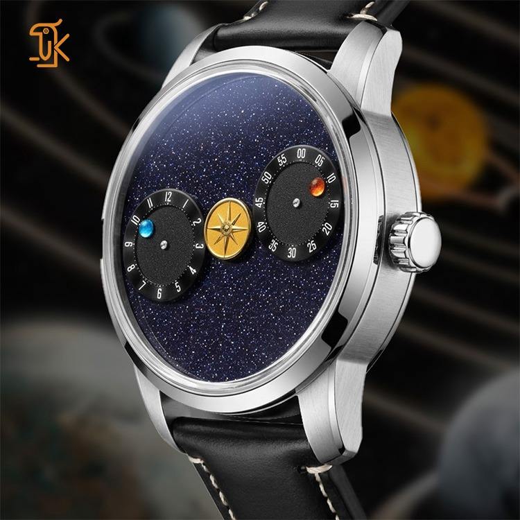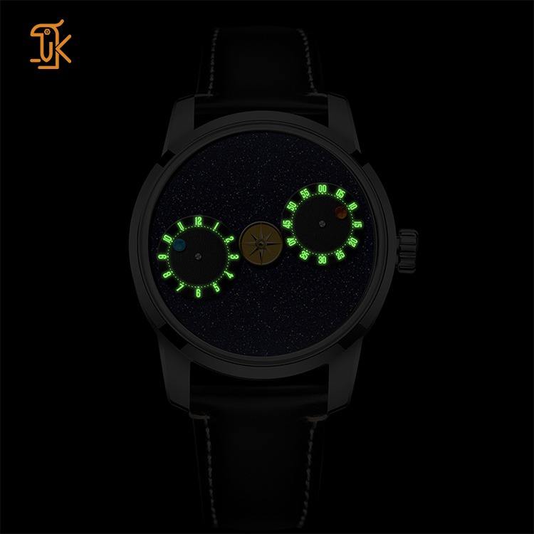 นาฬิกาแบบกลไกอัตโนมัติ OEM แบบกำหนดเองได้ พร้อมกลไก Wandering Hours ที่เป็นเอกลักษณ์ ไม่มีโลโก้ หน้าปัดหินอะเวนเจอรีนสีน้ำเงินดำ