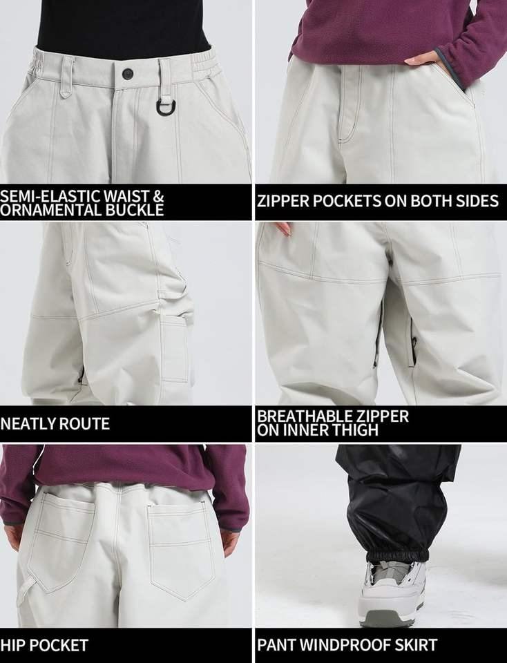 กางเกงสกีแบบ OEM ผลิตตามสั่ง กันลม ไซส์ใหญ่ ทรงหลวม มีซิป สำหรับเล่นสโนว์บอร์ด