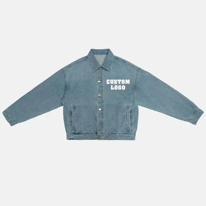 OEM Customized Stand Collar Waterproof Windproof High Street Cropped Length Oversized Light Washed Denim Jeans Jackets