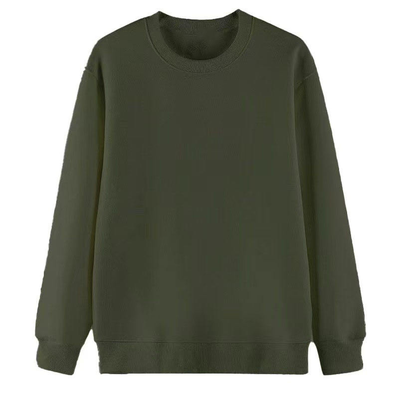 เสื้อสเวตเชิ้ตผู้ชายแบบหนา ผลิตตามสั่ง (OEM) ผ้าฝ้าย 100% สีพื้น คอกลม ทรงหลวม ปลายแขนเสื้อแบบริบ แห้งเร็ว เป็นมิตรต่อสิ่งแวดล้อม