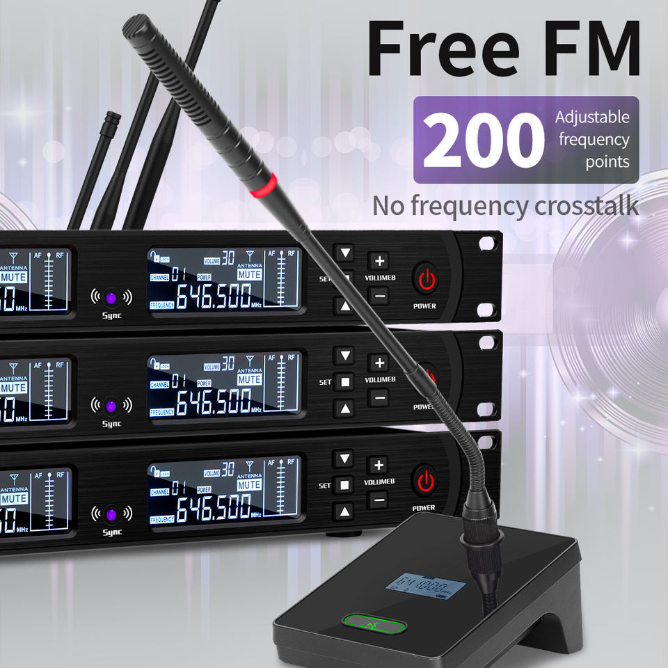 ไมโครโฟนไร้สายแบบคอร์ดิโอด์ 2 ช่องทาง OEM DR666 ระดับมืออาชีพ สำหรับการประชุม พร้อมระบบตัดเสียงรบกวน วัสดุโลหะและพลาสติก