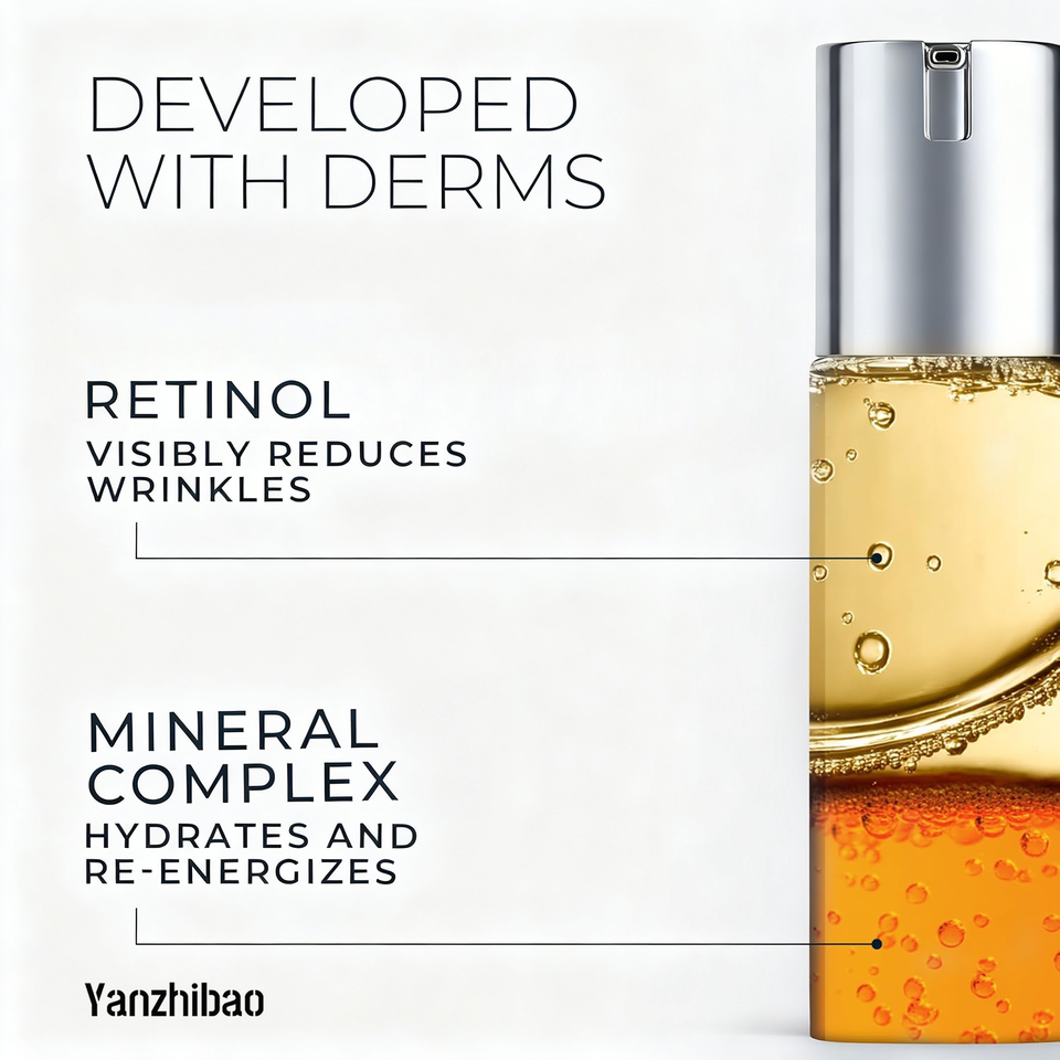 เซรั่มบำรุงผิวหน้า OEM ลดเลือนริ้วรอยลึกด้วยเรตินอลและแอสคอร์บิก แอซิด ช่วยลดเลือนริ้วรอย จุดด่างดำ และรอยแผลเป็นจากสิว