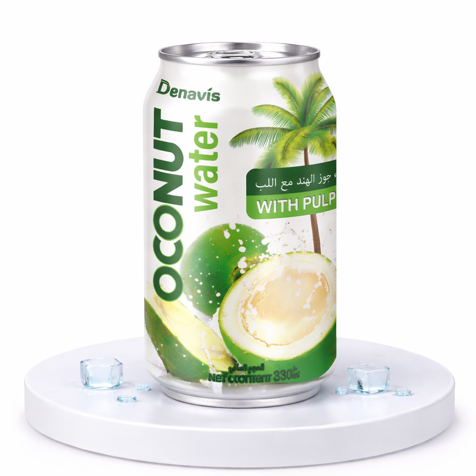 น้ำมะพร้าวโออีเอ็ม เดนาวิส พร้อมเนื้อมะพร้าว 330 มล. 500 มล. กระป๋องอะลูมิเนียม เครื่องดื่มมะพร้าวธรรมชาติ รับผลิตแบรนด์ส่วนตัว จำหน่ายส่ง