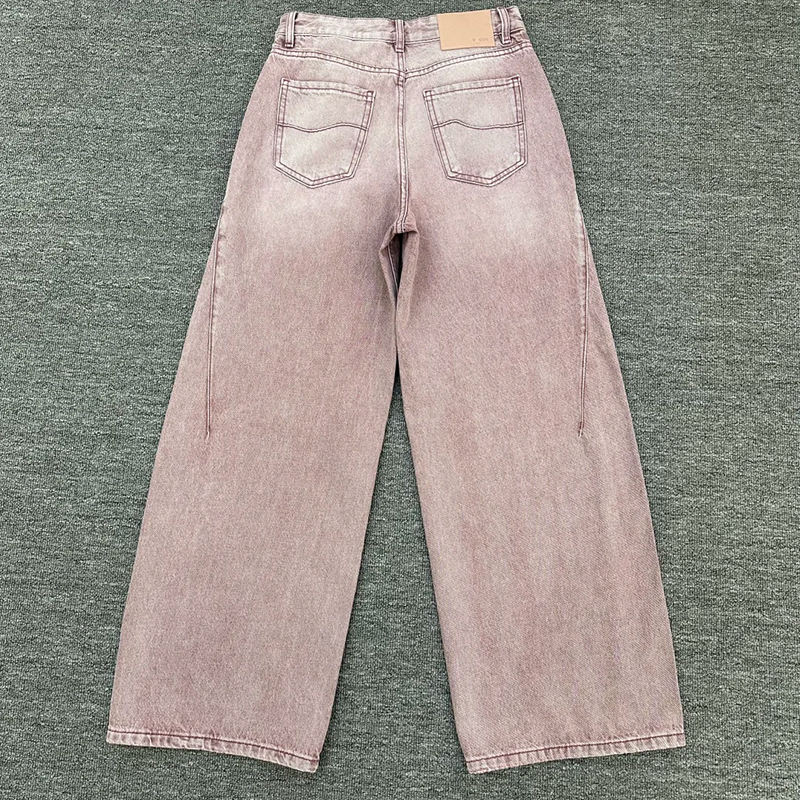 กางเกงยีนส์ OEM ขายส่ง กางเกงยีนส์สีม่วงพิมพ์ลายขาดๆ สไตล์ฮิปฮอป สำหรับผู้ชาย รับทำโลโก้ตามสั่ง