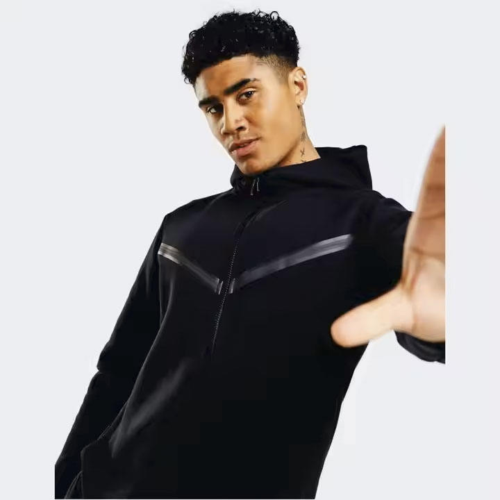 เสื้อฮู้ดผู้ชายผ้าฟลีซผ้า31% โพลีเอสเตอร์สีดำซิป69% ดีไซน์แบบ OEM