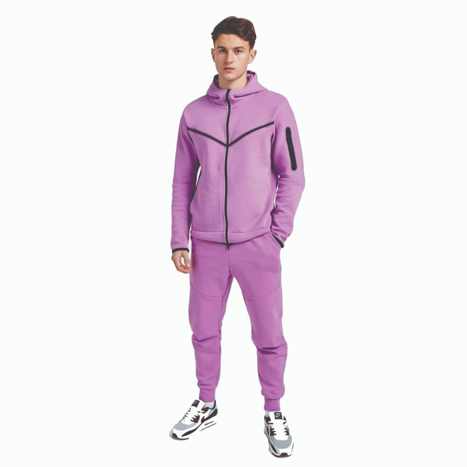 ชุดวอร์มผ้าฟลีซมีฮู้ดสำหรับผู้ชายกางเกงวอร์มผ้าฝ้าย31% 69% ผ้าโพลีเอสเตอร์สีชมพูดีไซน์แบบ OEM