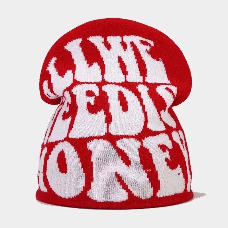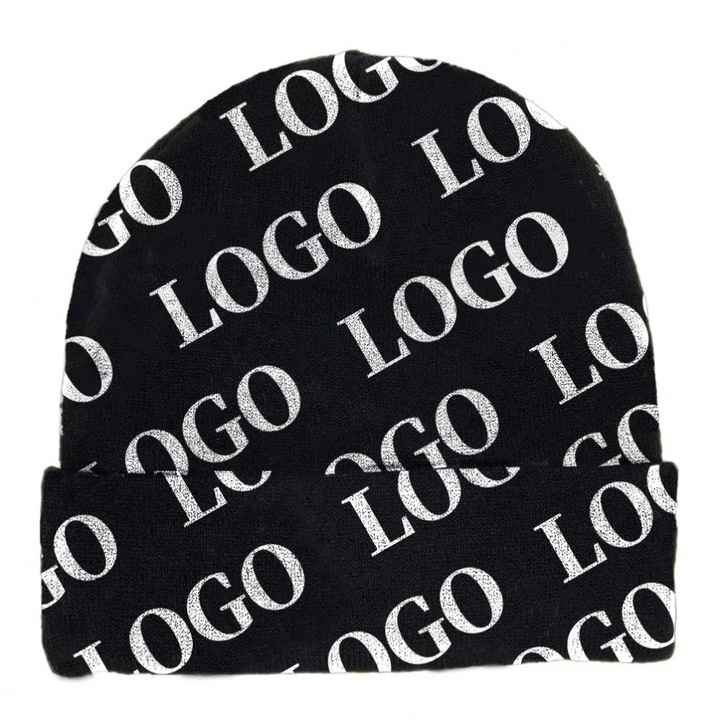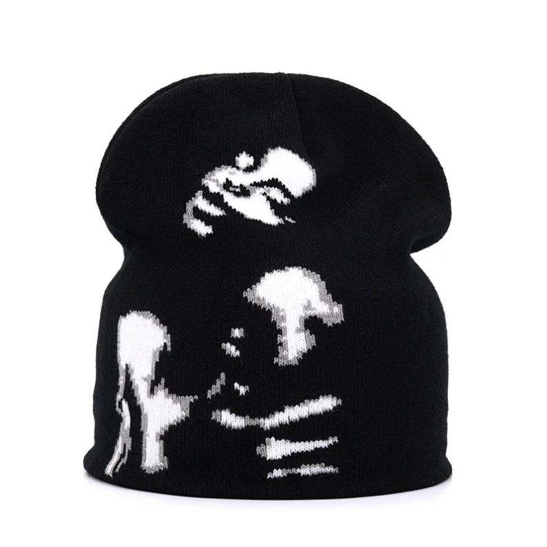 หมวกไหมพรมแบบไม่มีขอบ ลายพิมพ์ทั้งใบ ดีไซน์ OEM สำหรับฤดูหนาว ลายหัวกะโหลก แบบยูนิเซ็กส์ หมวกถักสำหรับฤดูใบไม้ร่วงและฤดูหนาวสไตล์ยุโรป หมวกบีนนี่ถักสำหรับผู้ชาย