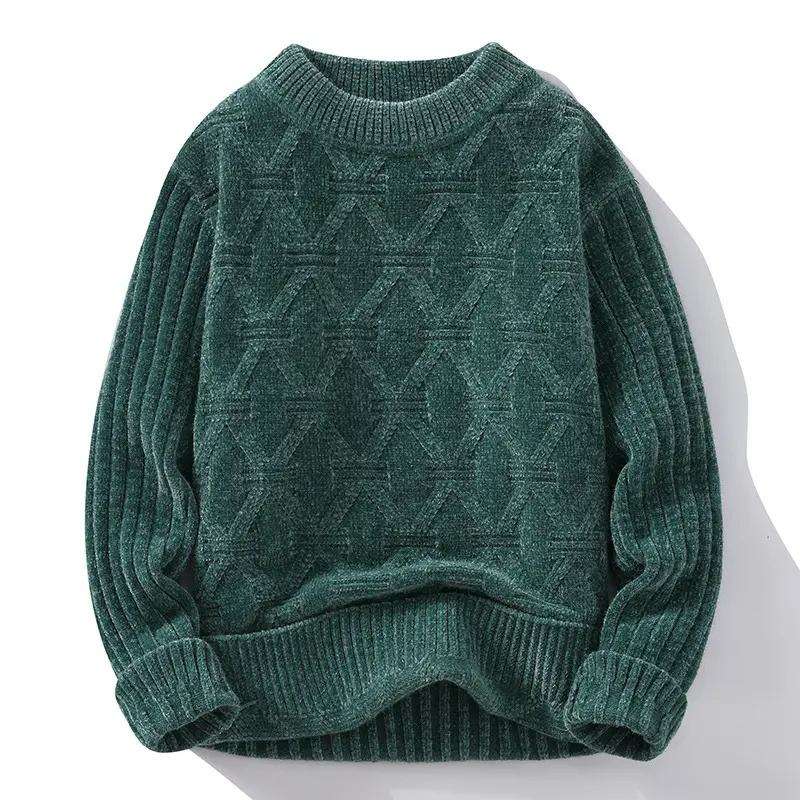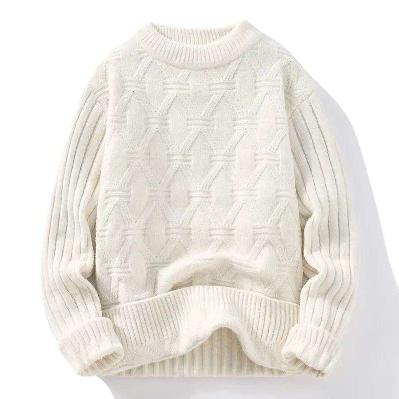 เสื้อสเวตเตอร์ผ้าขนแกะสำหรับผู้ชายเสื้อสเวตเตอร์ถักแบบสวมหัวลายทางคอกลมผ้าขนฟูออกแบบได้ตามต้องการ