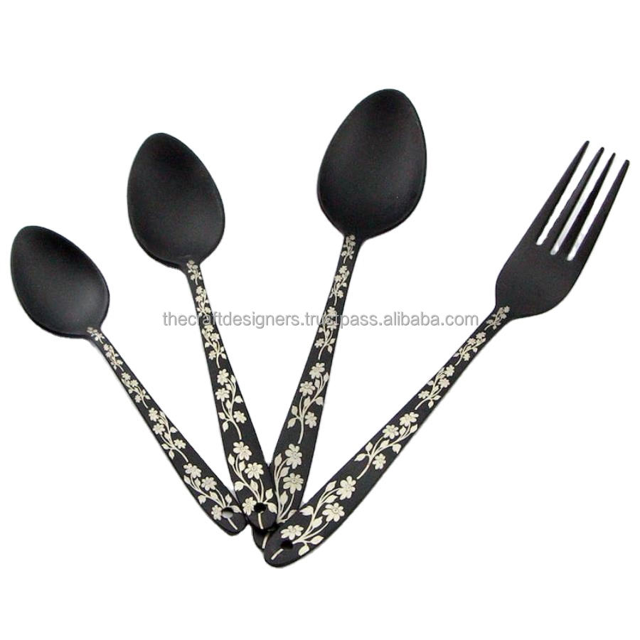 ชุดช้อนส้อมสแตนเลสงานฝีมือ ดีไซน์ OEM สำหรับงานเทศกาล ใช้ซ้ำได้ ราคาขายส่ง